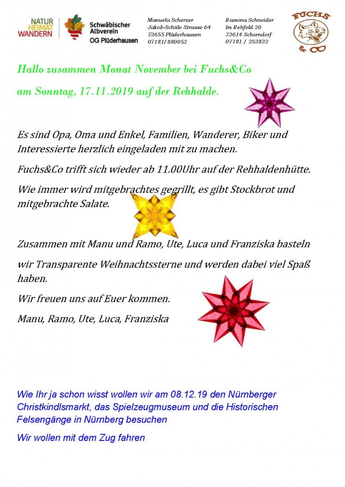Fuchs & Co trifft sich wieder ab 11.00 Uhr in der Rehhaldenhütte.