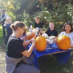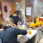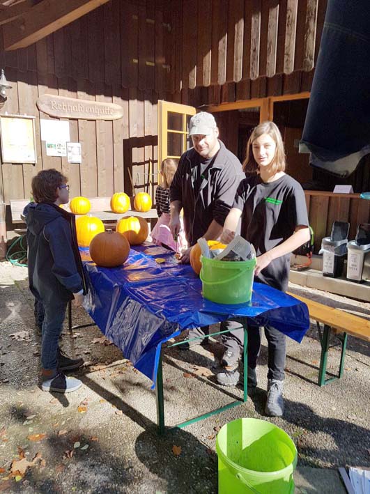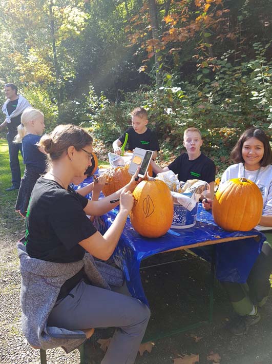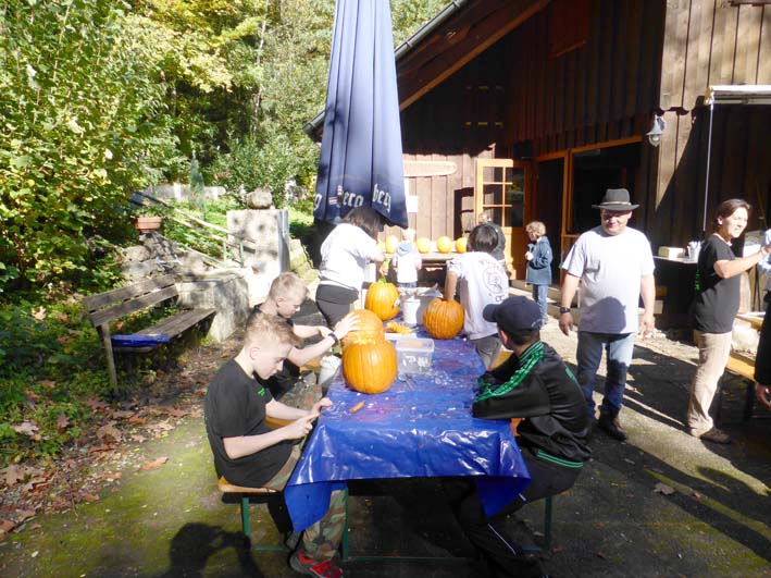 Kürbisschnitzen statt. Während die Kinder eifrig Kürbisse aushöhlten