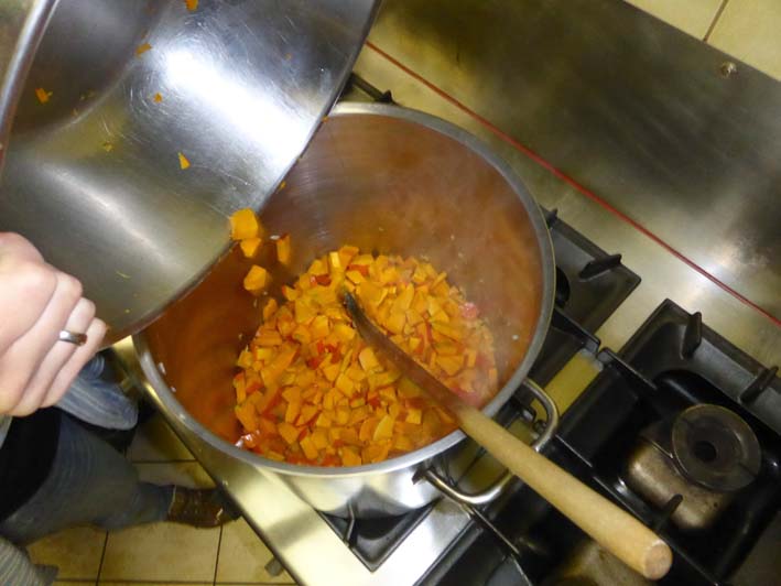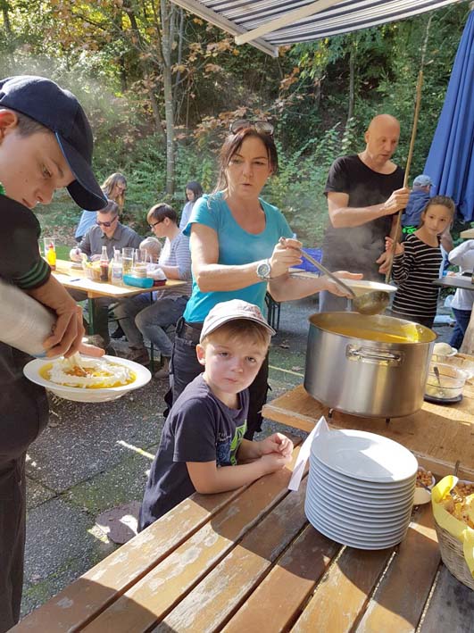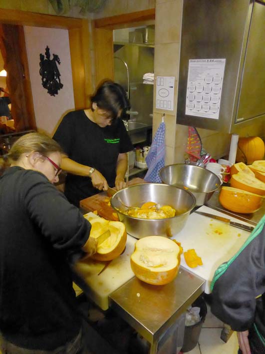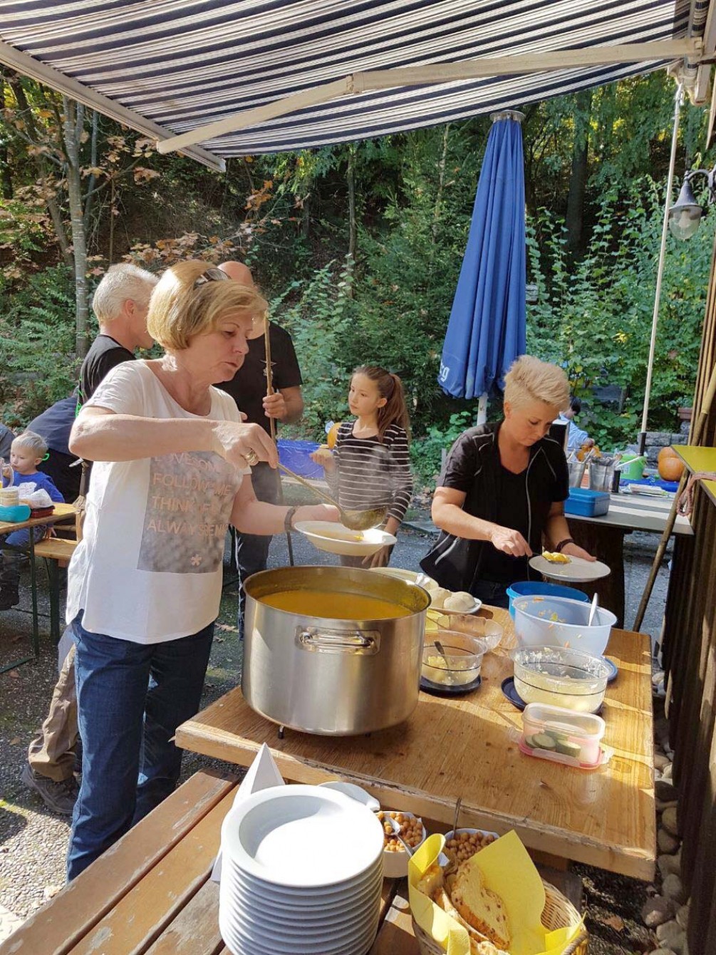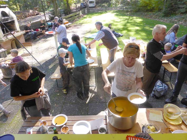 Kürbissuppe zubereitet, zu der alle herzlichen eingeladen waren.